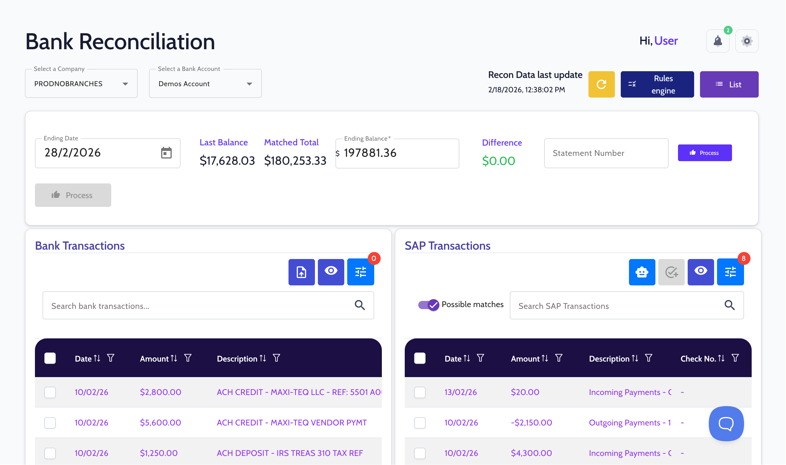 Automate bank statement imports and transaction matching inside SAP Business One. Connect to 10,000+ banks globally and eliminate manual reconciliation work.
