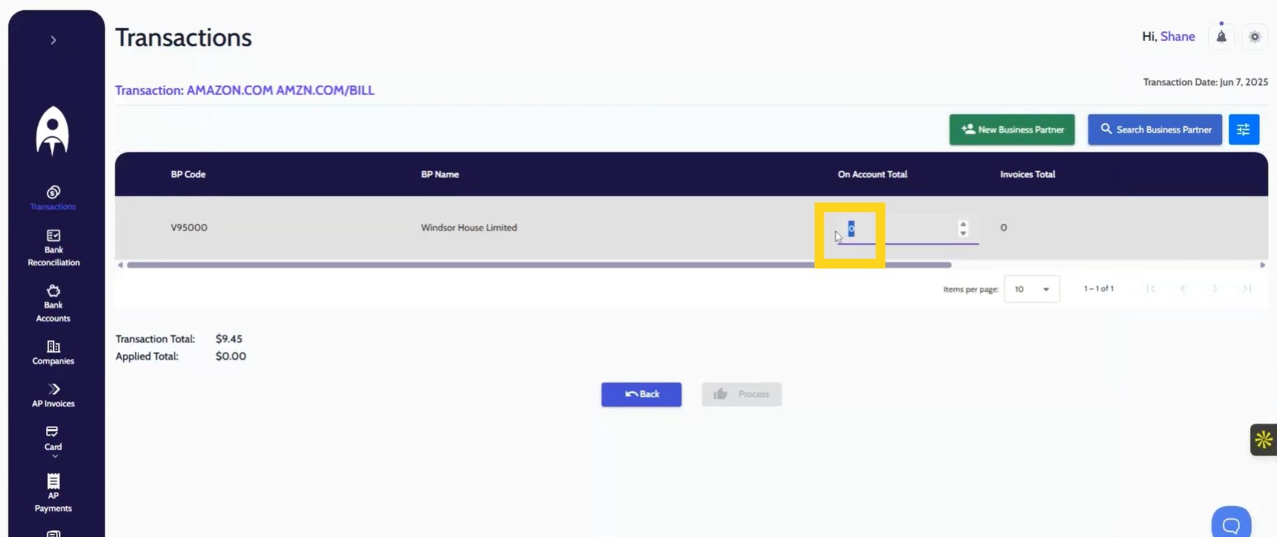 Once done, hit Process and the transaction is posted directly into SAP Business One.